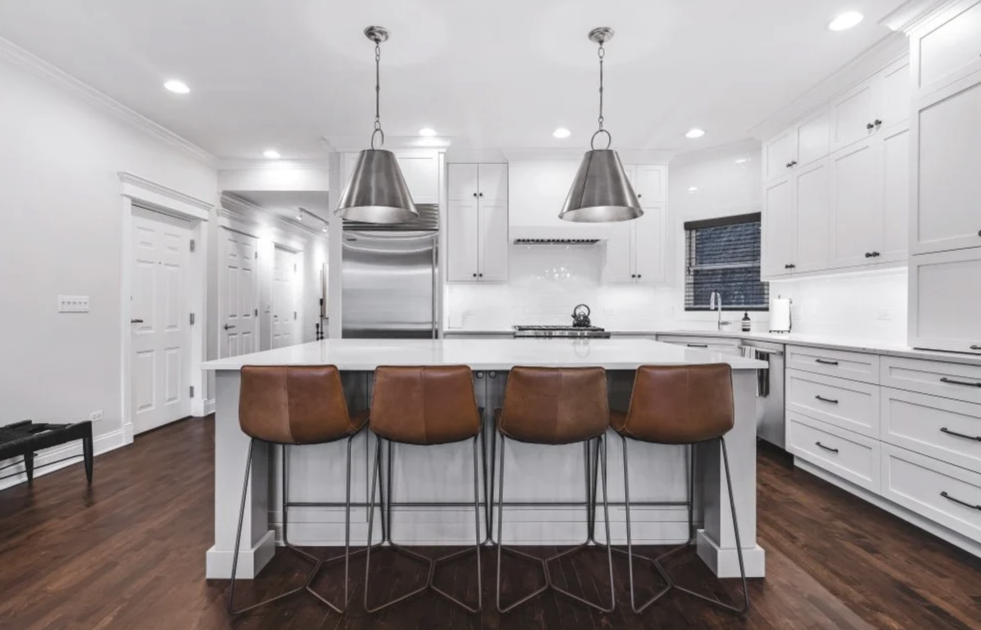 In many Chicago suburban homes, where kitchens open into family rooms, statement lighting also helps visually define the kitchen zone without walls.